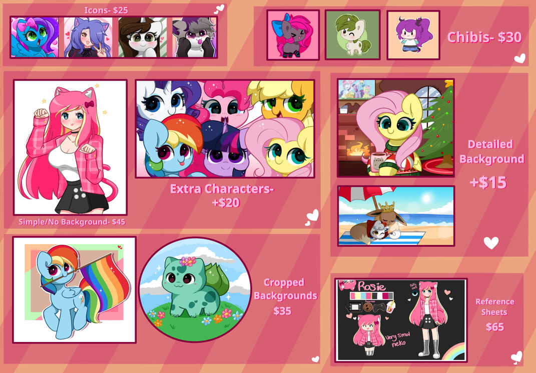 I'm 22 years old and an artist that draws a variety of things. Such as Ponies, Anime girls, Pokémon, animals, etc. My DMs are always open, however, I mainly only respond to questions regarding commissions or questions about our shop. If you have any other questions, please don't start with just "Hi" or "Hey, what's up?". Please just get to the point. My price sheet is available below, if you wanna get an idea of what I charge. My social media links will be down below as well!You can now find me on Bluesky!